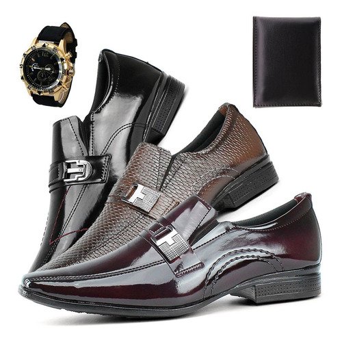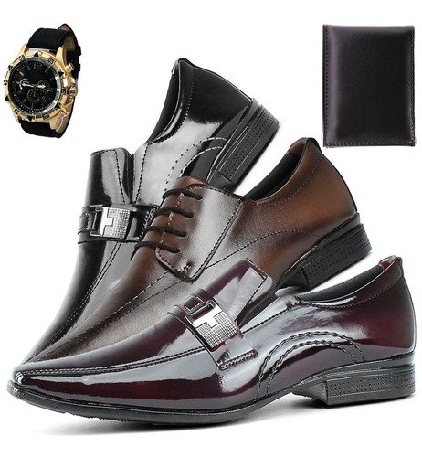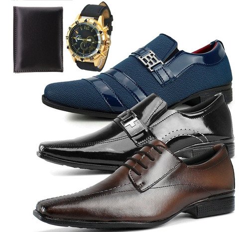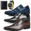 Kit Elegância: Três Pares de Sapatos Sociais + Carteira, Ganhe um Relógio