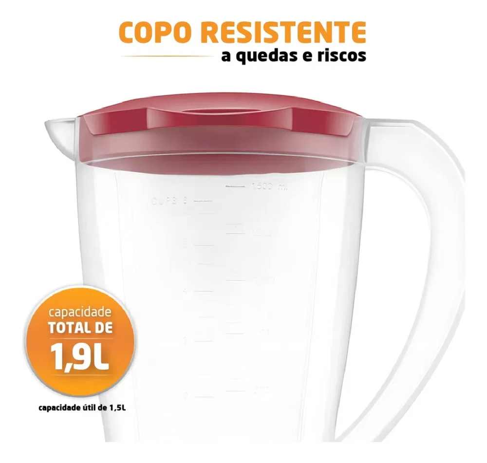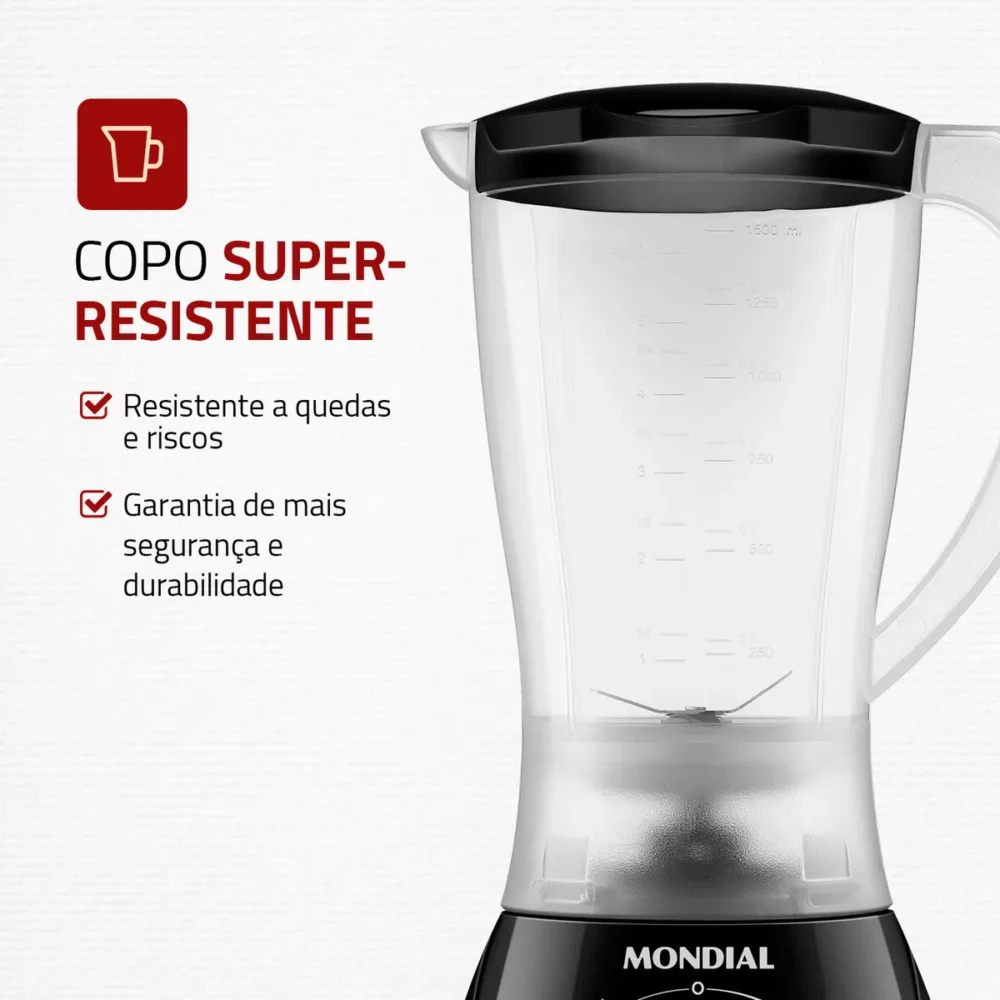 O copo dos liquidificadores Mondial é super-resistente e garante mais durabilidade para seu aparelho.